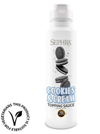 Sephra's Cookie & Cream Topping Sauce can be served warm or cold and is perfect for use on Ice Cream, Waffles, Pancakes, Crêpes and is great as a Milk Shake Flavouring. If you are looking for a top-quality topping to finish off desserts and hot drinks, then this delicious White Chocolate sauce is ideal.