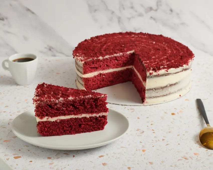 Sugar, wheat flour (with calcium carbonate, iron, niacin, thiamin), thickener (modified potato starch), vegetarian whey powder (milk), raising agents (E450i disodium diphosphate, E501 potassium hydrogen carbonate), wheat gluten, salt, rice starch, modified maize starch, emulsifiers (E475 polyglycerol esters of fatty acids, E481 sodium stearoyl-2-lactylate, E471 mono- and diglycerides of fatty acids), stabilisers (E466 sodium carboxymethylcellulose, E412 guar gum, E415 xanthan gum), eggs, glycerine, vegetable oil, cocoa powder, cream cheese flavour icing (sugar, palm oil, glucose syrup, water, rapeseed oil, skimmed MILK powder, humectant (E422 glycerol), emulsifiers (E471 mono and diglycerides of fatty acids, E435 polysorbate 60), acidity regulator (E330 citric acid)), butter (milk), raspberry red colour (dextrose, colouring E122, sodium chloride).