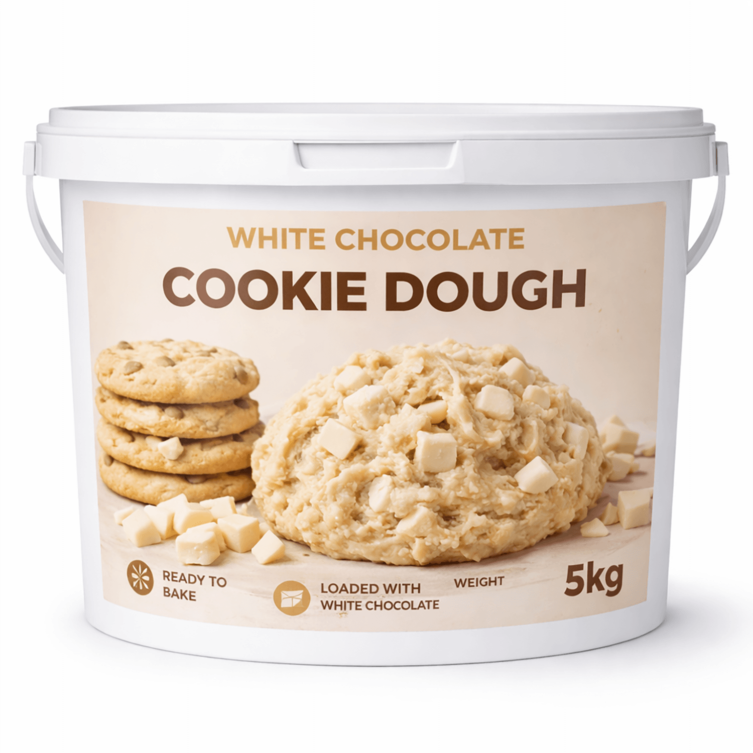 A rich and indulgent white chocolate cookie dough, supplied in a convenient 5kg bucket—perfect for busy kitchens and dessert businesses. Made with soft, buttery dough and loaded with creamy white chocolate pieces, it delivers a smooth, sweet flavour with every bite. Easy to portion and bake, it creates warm, gooey cookies with a golden finish and irresistible aroma, ideal for serving fresh or as part of premium dessert creations.